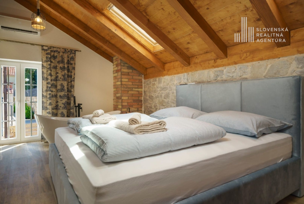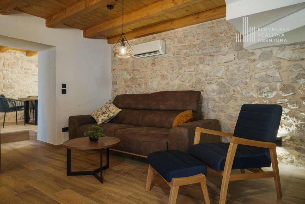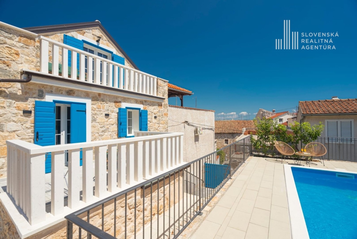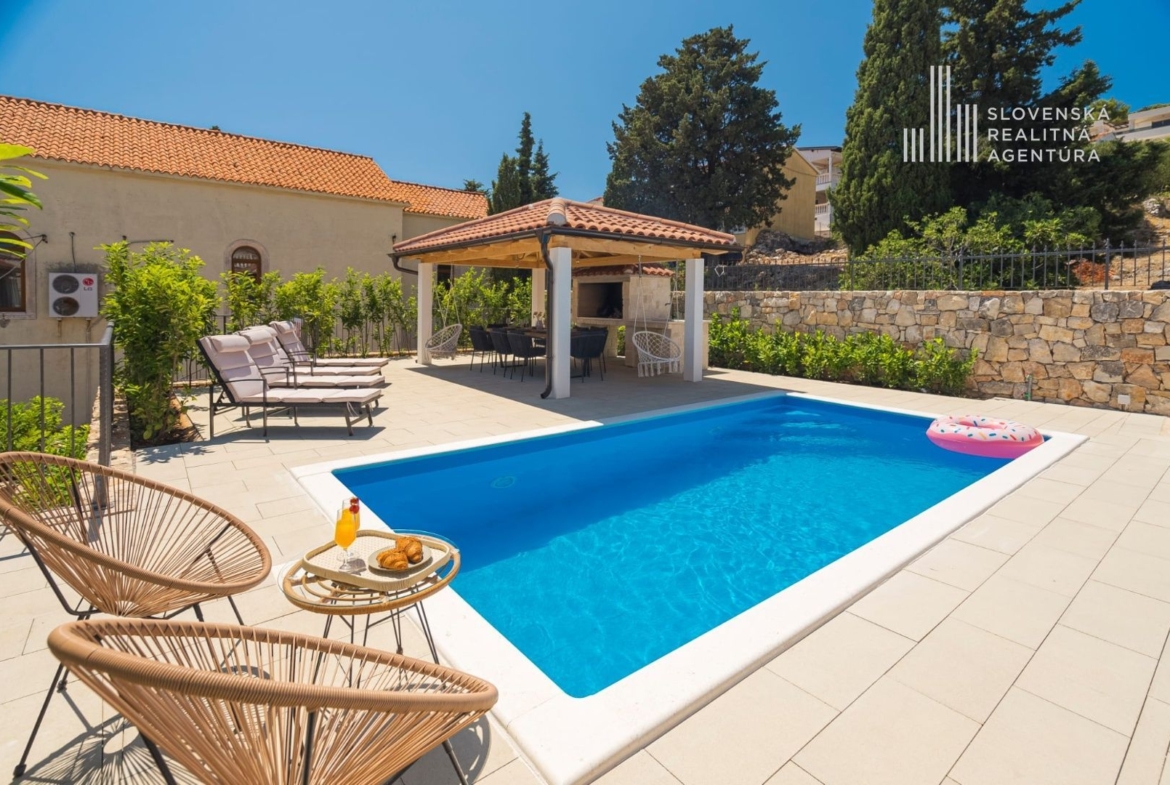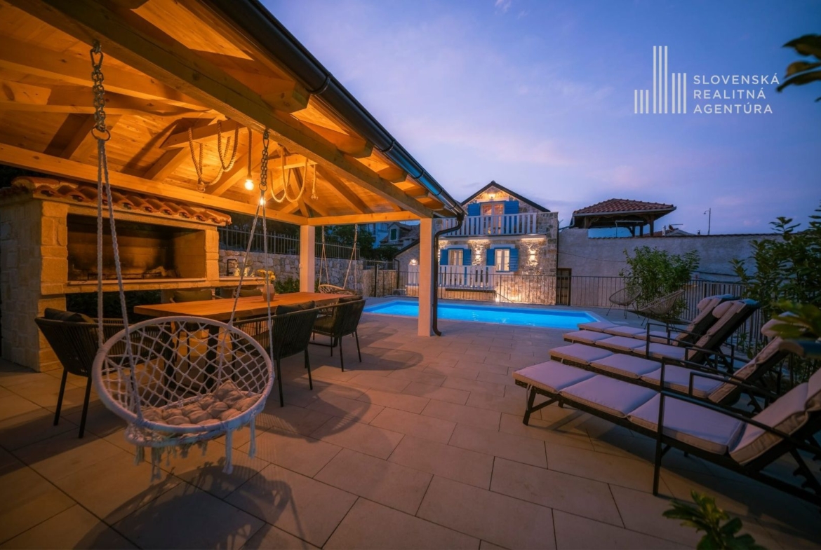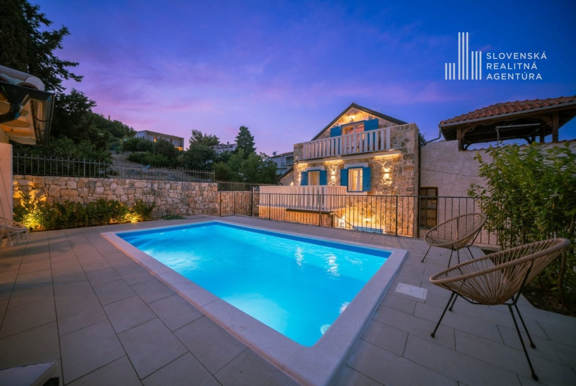 Ponúkame na predaj exkluzívnu kamennú vilu s bazénom, ktorá zhmotňuje kúzlo autentického dalmatínskeho štýlu, jemne zrekonštruovanú s dôrazom na najvyššiu kvalitu materiálov.